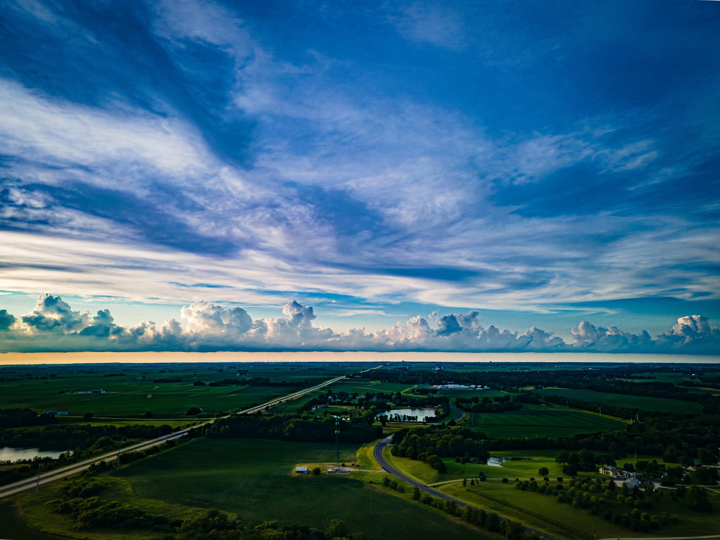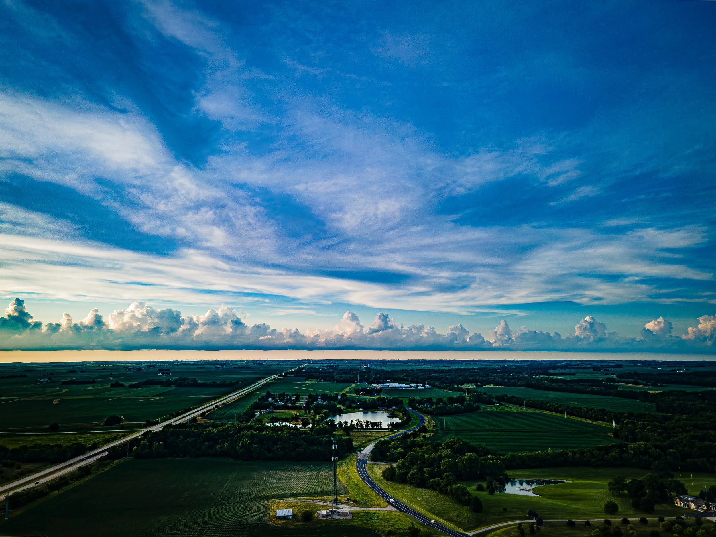 Moving to central IL from Oregon a year ago and looking around at the landscape was a little lonely at first. Mountains have always felt like home to me. Not seeing their imposing presence on every horizon was isolating, like I had lost some old friends. With time though I’ve come to appreciate our new home of Normal, IL, Bloomington, BloNo, or whatever else your preferred term is. The skies are enormous, and I couldn’t hope for more dramatic cloud-scapes. Prevailing wind patterns cause storms to break around the northwest corner of town, then the summer sunset ignites the entire view. Once-or-twice-a-year sunset scenes in Oregon are just a plain ol’ summer Tuesday here in Normal. Every time I think I’m getting bored with flying near my home, I get a new view, a new take on a familiar building, a new opportunity to capture some magnificent and humbling weather event, and I’m refreshed. The area is more alive with history than you’d ever know just by looking at it. The community is kind and unassuming for the most part, and to the extent the pandemic has allowed we feel at home. I’ve been lucky as a Drone Photographer to find the opportunities of shot and composition the area offers, and to only be chased with a shovel once.